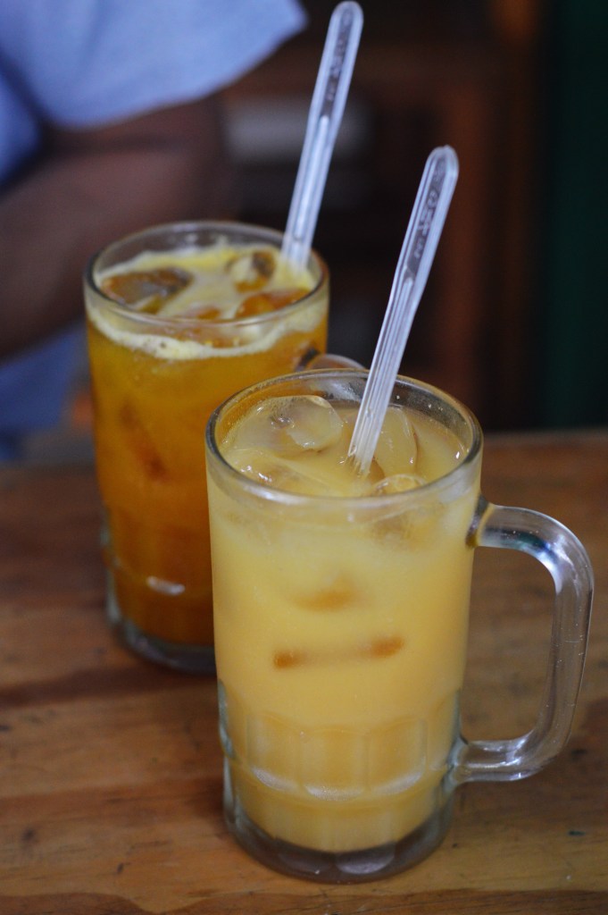 We went to a place that sells Pecel near the market we bought ingredients from. Pecel is a Javanese salad made with steamed veggies and topped with a peanut sauce. It is usually served with peanut crackers called peyek kacang, but this contains egg so you can say ‘tanpa peyek kacang’ which means ‘without peanut crackers’. They will also ask if you want lontong (rice cake steamed in a banana leaf) or nasi (rice) with it. After they prepare the salad part of the meal, they will ask for what sides you want, which are on display. The vegan options include bakwan (vegetable fritters) and various kinds of tofu and tempeh. Each side will cost a little bit extra. Beras Kencur and Kunyit Asem are both traditional herbal drinks, the former being made from rice and a cooling herb called Kencur, and the latter being a turmeric and tamarind blend which is apparently known to be good to drink if you’re on your period.