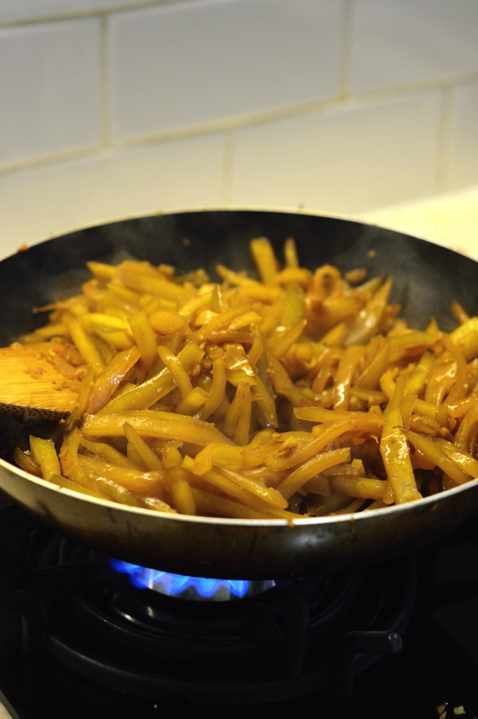 Then it was time to start frying all the aromatics and then add the papaya to the pan, along with the Javanese sugar, kecap manis sauce and salt. I knew when the papaya was cooked because it started to turn translucent and reminded me a bit of the appearance of jellyfish or seaweed.