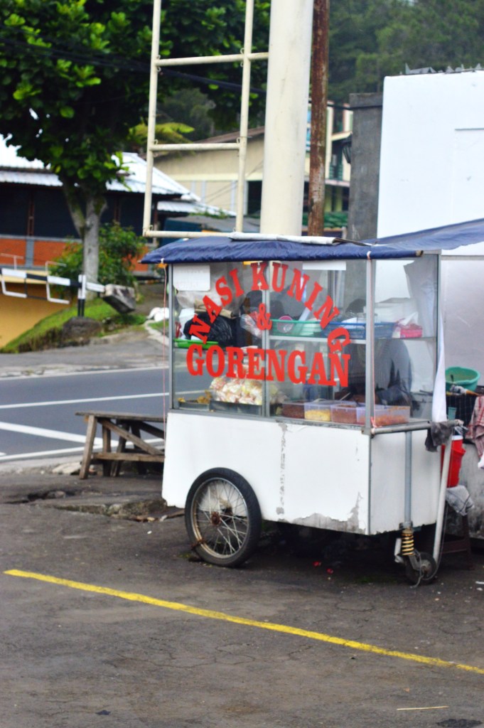 The next day we went for a morning walk to the nearest Indomaret because Yayan wanted to get some snacks and instant coffee. Outside the Indomaret, there was a kaki lima style stall, which was run by a kind woman who also gave us tips about transportation costs. We got nasi kuning (yellow rice) and had it with some noodles, tempeh and bakwan (vegetable fritters).
