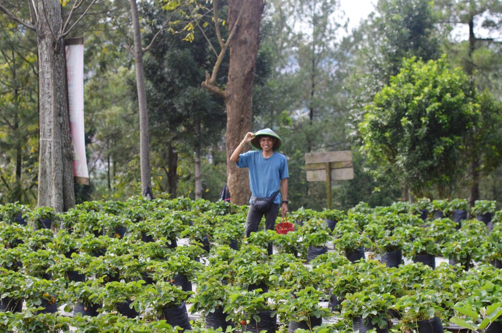 Then we took a van, also known as an angkot, which are coloured vans that pick you up along the street with several other passengers and you just ask them if they can take you to your destination for 5k Rp per person. We made the mistake of asking how much it was as we were getting off, as it gave the impression that we were clueless tourists so the driver increased the normal price. We went to go strawberry picking at a place called Bukit Stroberi Lembang and we arrived just as they opened at 8:30. We were the only ones there picking strawberries so it felt a bit special, especially when Indonesia is usually packed with people. I feel like I was made to pick berries – I got so excited finding the juicy red strawberries to fill up my basket. At the top of the hill, they gave us some strawberry juice which was super refreshing! We filled up 2 baskets of strawberries which ended up being around 340k Rp.