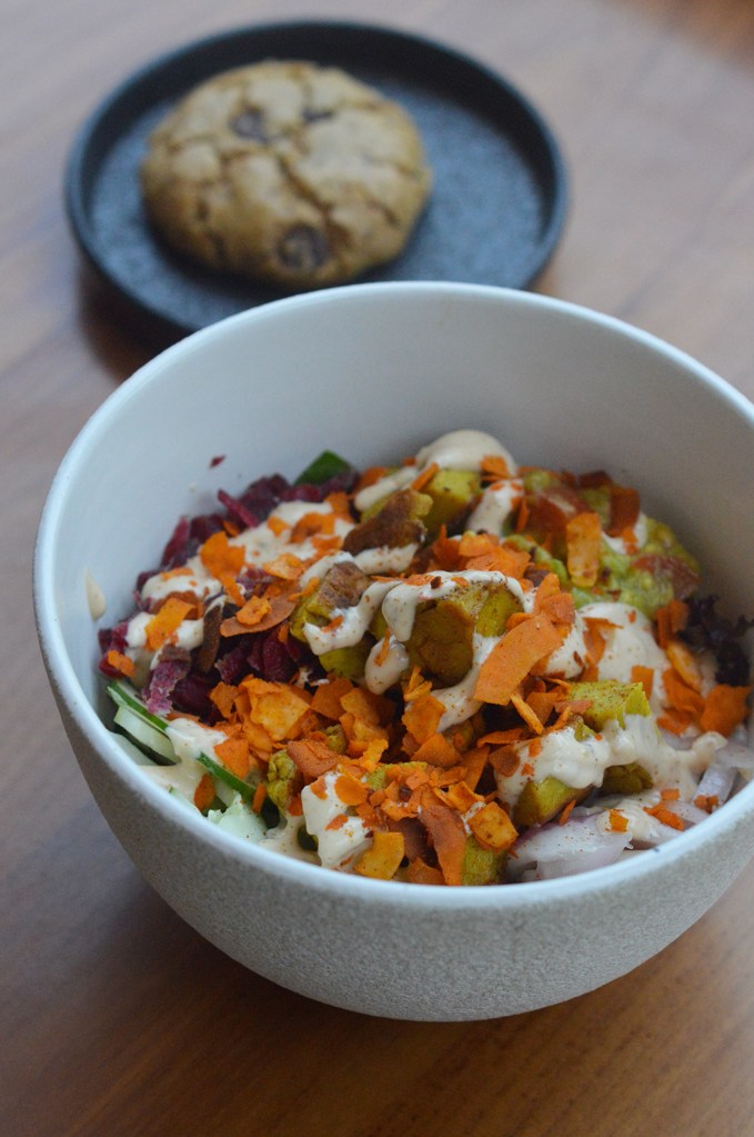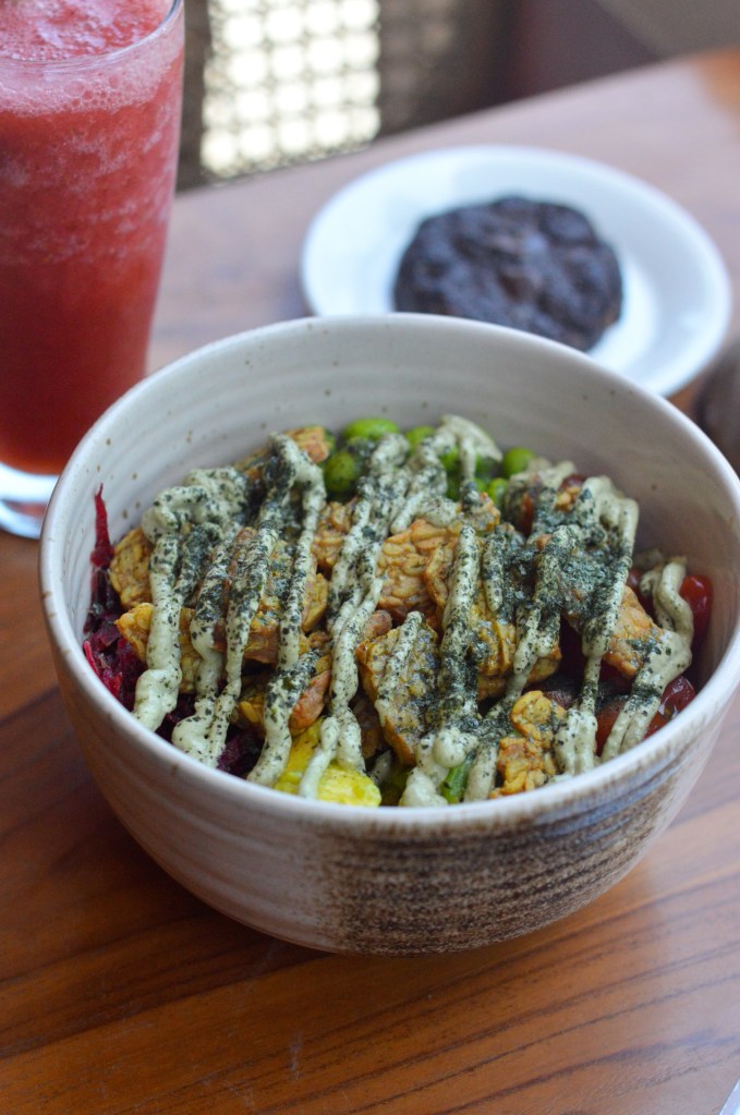 This is a poke bowl place that has tofu, vegan chicken and tempeh as some great protein options. You can customise your bowl and the vegan sauces and other ingredients are clearly labelled. The cookies here are also vegan and one was just like a soft and fudgy brownie!